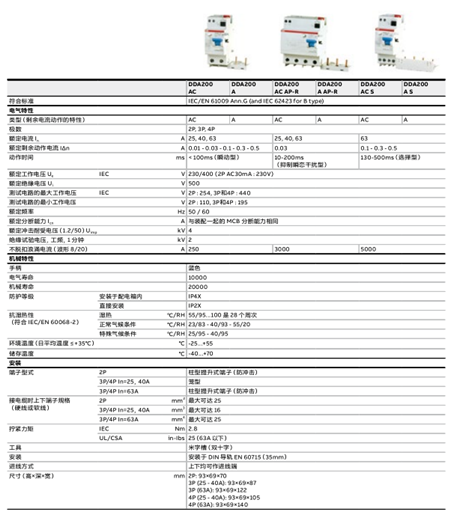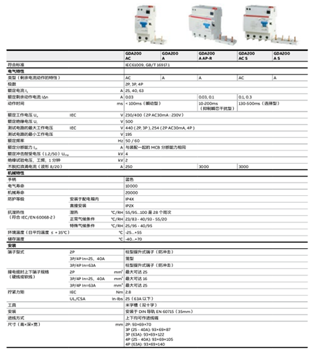 剩余電流動(dòng)作保護(hù)器-GS200, GSH200,GSN201, GDA200, DDA200, F200
