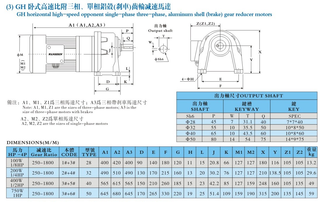 - GH臥式齒輪減速馬達安裝尺寸圖