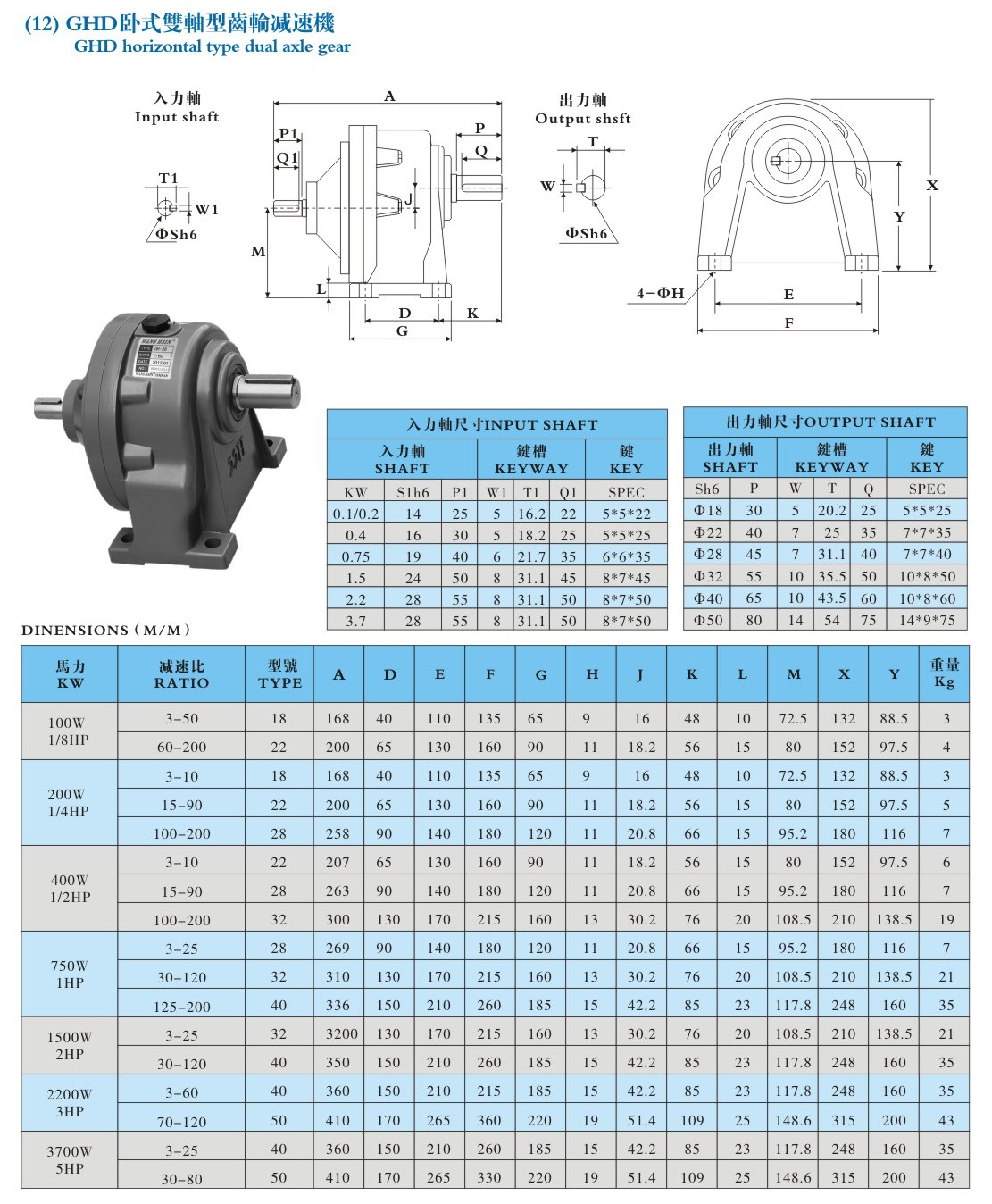 - GHD臥式雙軸型齒輪減速機(jī)安裝尺寸圖